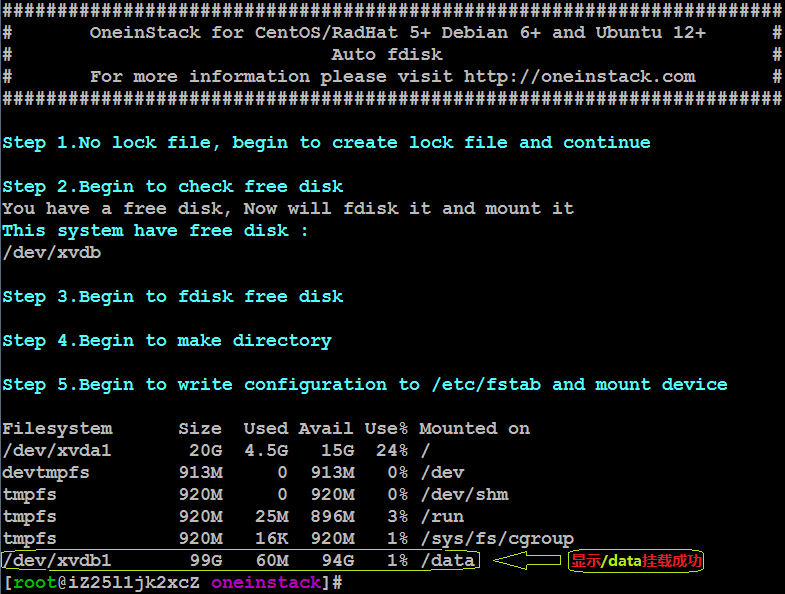 功能:自动检测是否有尚未分区的数据盘,格式化新的数据盘并自动挂载