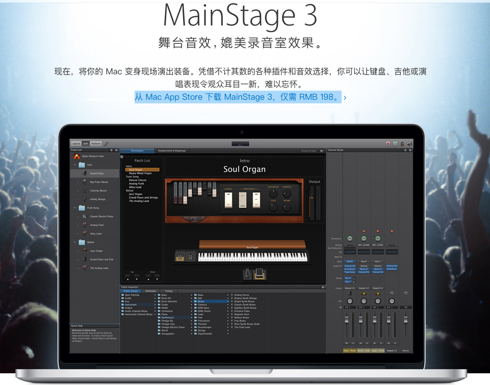 走客简单说明下MainStage的特点: