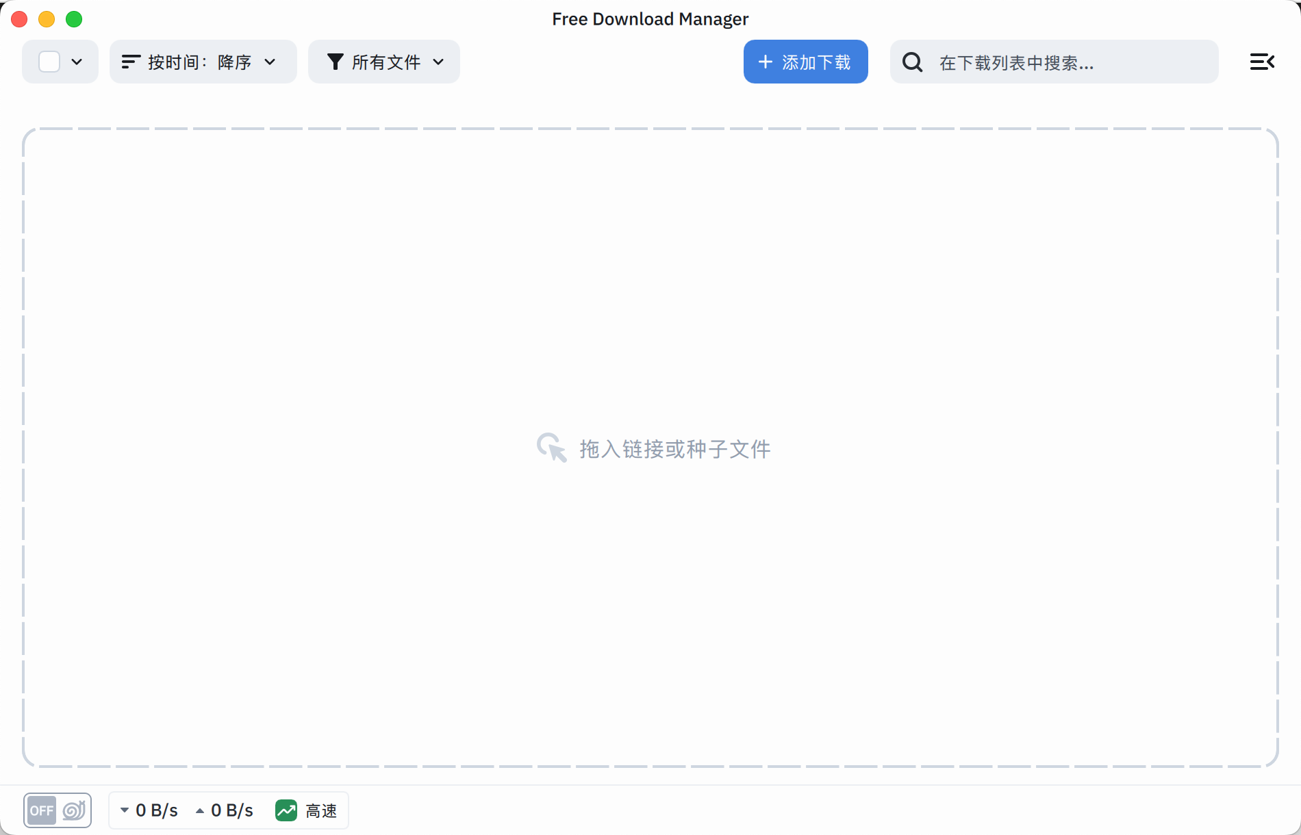 2、Free Download Manager,简称fdm,是小编目前在用的一款下载工具,界面如下,非常简洁明了,支持中文,也一直在更新,相对于ndm来说,fdm可以下载种子,并且下载速度和ndm一样较快,缺点就是文件稍微大点,无法关闭下载种子文件的上传问题。