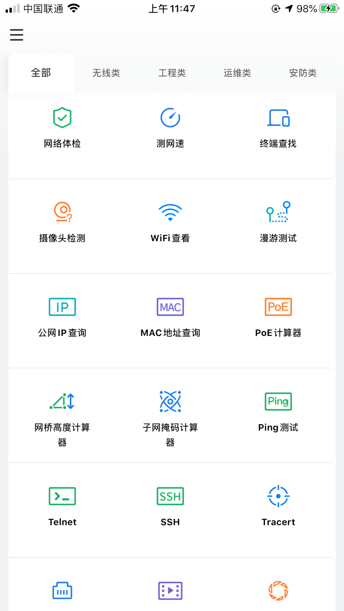 iOS版 “网络百宝箱”App正式发布,从专业的Wi-Fi检测工具发展为面向Wi-Fi、安防、企业网、智能网等更广领域的网络专业检测工具。