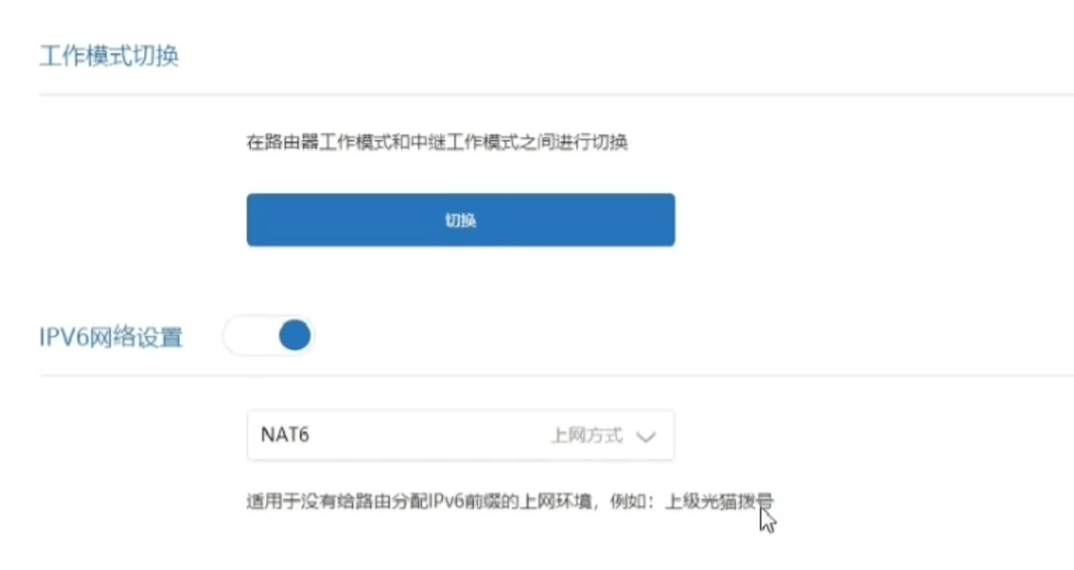 在小米(红米)路由器管理后台的IPV6设置里有3种模式: