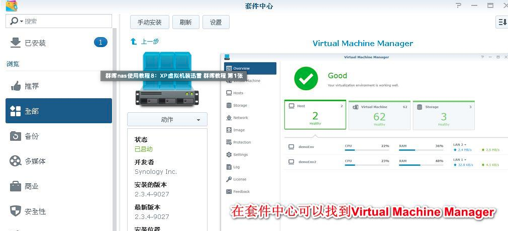 A、这里不得不提到群晖的虚拟机功能,可以去套件中心找到Virtual Machine Manager