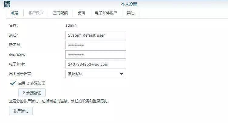 注意 开启二次认证服务最好先配置群晖邮件通知服务 方便以后找回密码