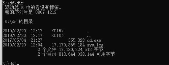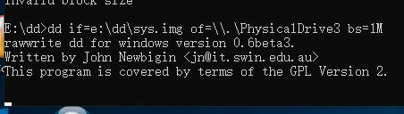 输入命令 dd if=e:\dd\sys.img of=\\.\PhysicalDrive3 bs=1M,这里一定要注意!!!